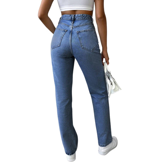 SHE kék magas derekú egyenes szárú farmer nadrág