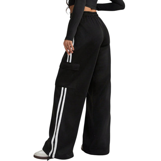 SHE fekete csíkos bő szárú nadrág
