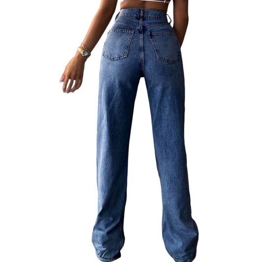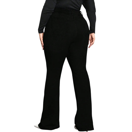 SHE fekete magas derekú trapéz szárú farmer nadrág