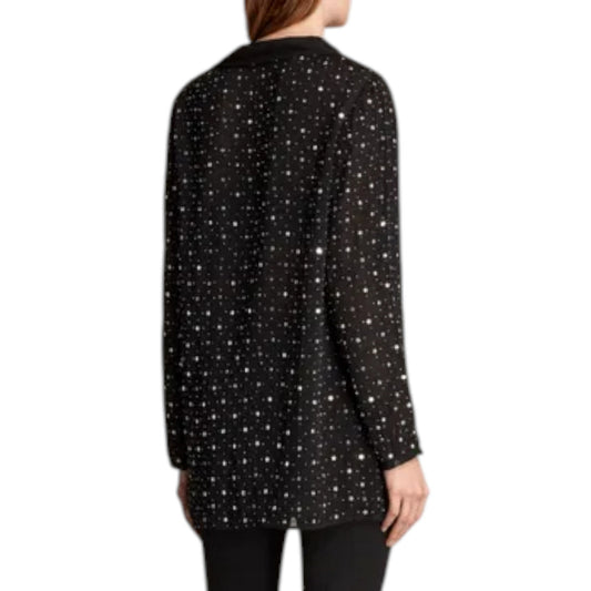 ALLSTAINT fekete csillogó V-nyakú hosszú blúz