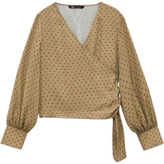 ZARA bézs pöttyös átlapolt hosszú ujjú blúz