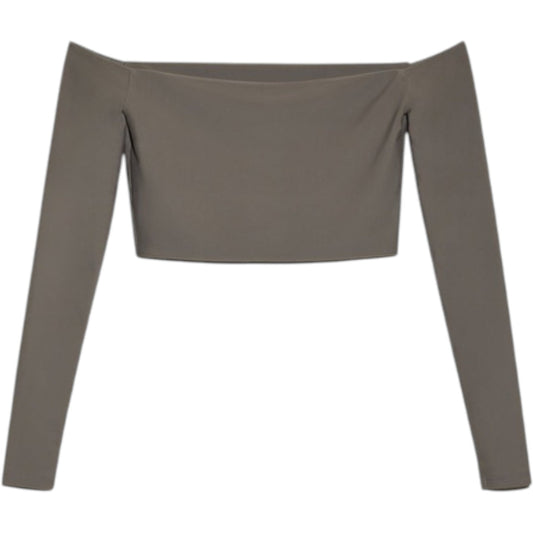 ZARA taupe váll nélküli hosszú ujjú crop top