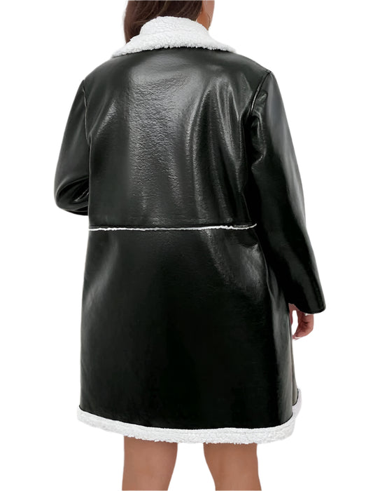 SHE műbőr szőrmebéléses kabát - fekete/fehér