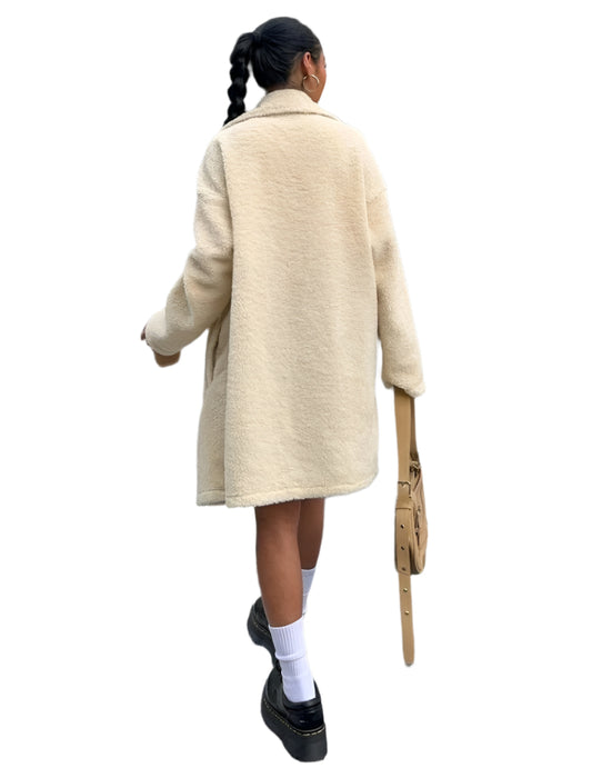 ElfogyottSHE oversized műszőrme kabát - bézs