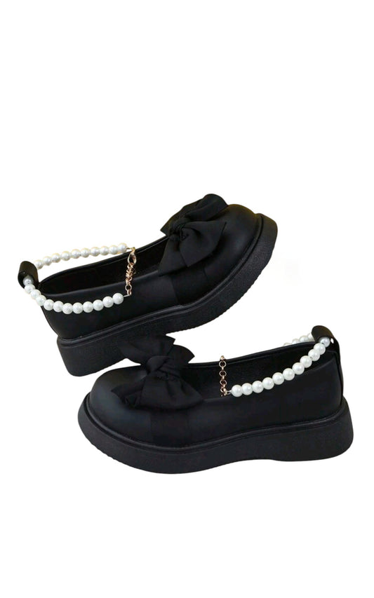 SHE fekete masnis gyöngyös pántos platform cipő