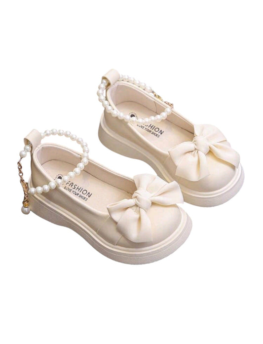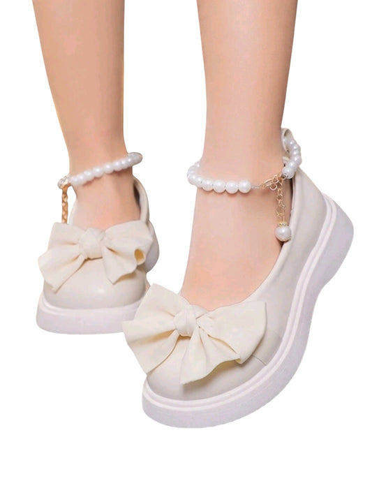SHE fehér masnis gyöngyös pántos platform balerina cipő