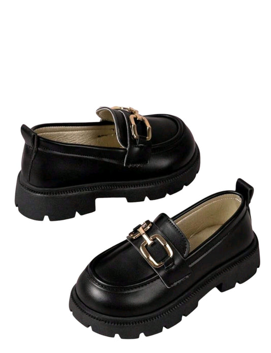 SHE fekete arany csatos platform loafer