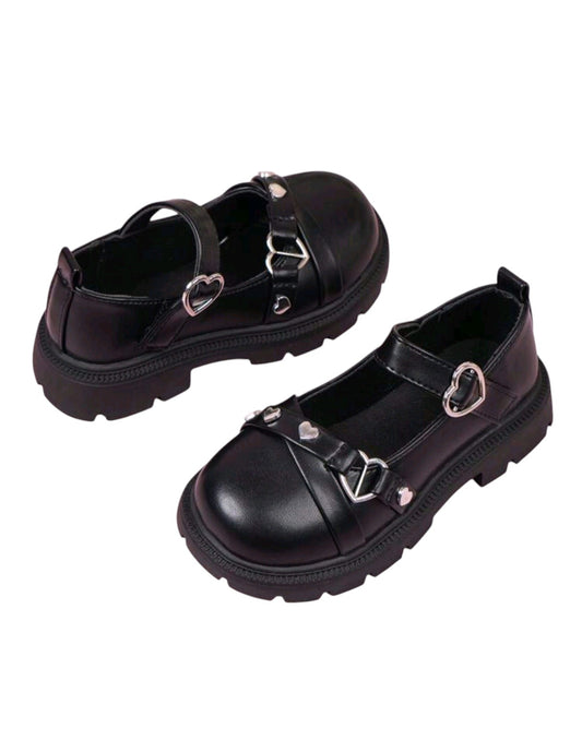 SHE fekete szívecskés csatos platform Mary Jane cipő