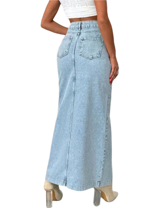 ElfogyottSHE kék szaggatott farmer ceruzaszoknya
