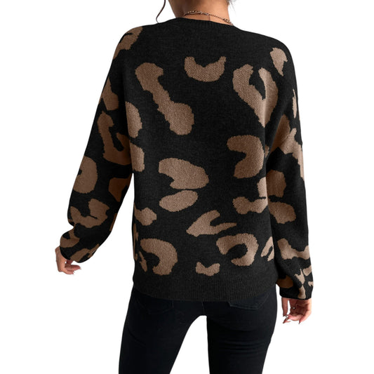 SHE fekete állatmintás kötött pulóver