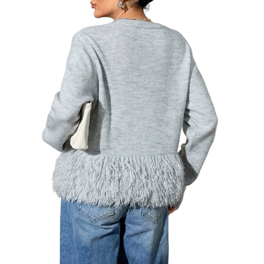 SHE szürke bojtokkal díszített kötött pulóver