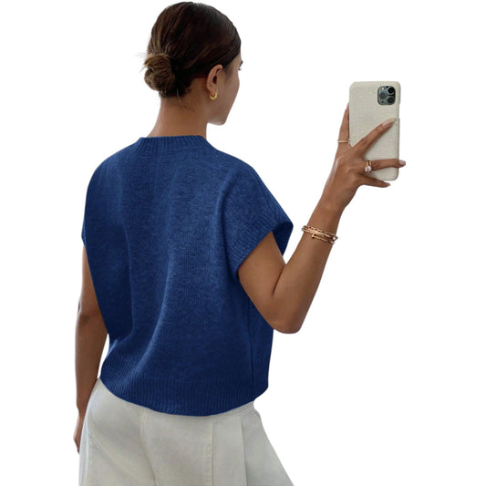 SHE kék hímzett virág ujjatlan pulóver