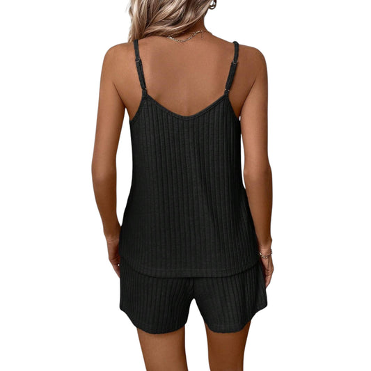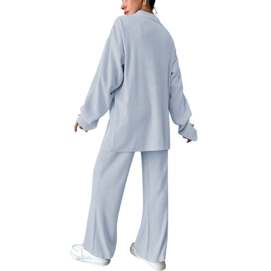 SHE sötétkék pánt nélküli széles szárú nadrág szett