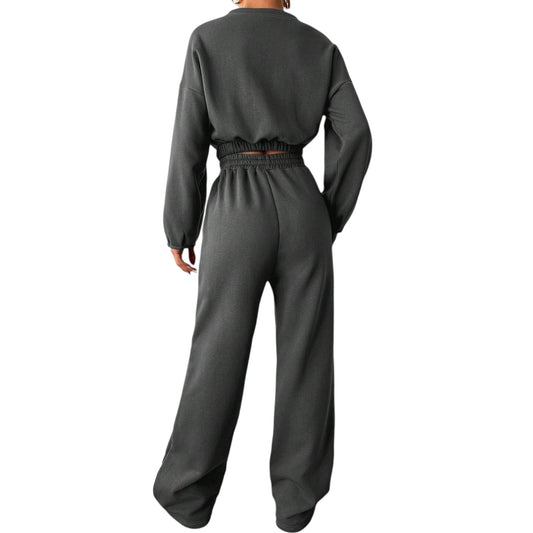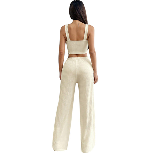 SHE ekrü bordázott crop top és palazzo nadrág szett