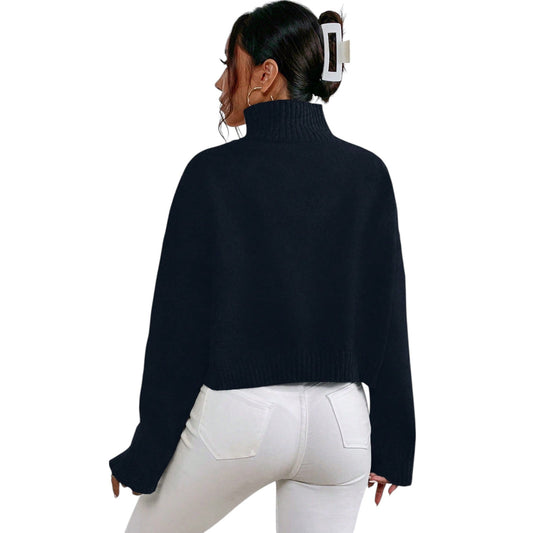SHE fekete magas nyakú kötött pulóver
