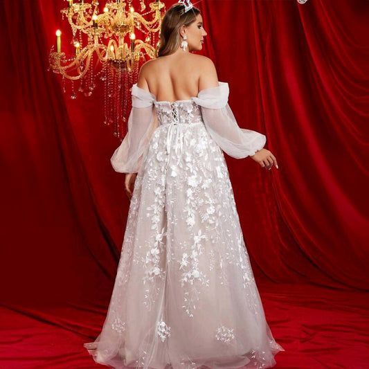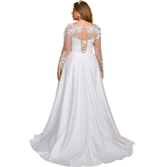 SHE fehér csipkés hosszú ujjú esküvői ruha