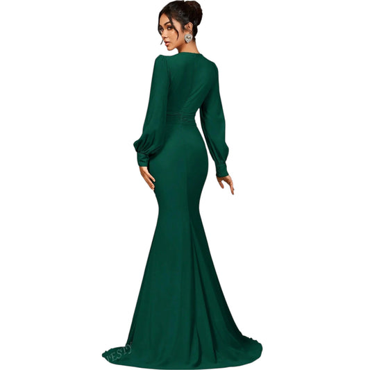 SHE zöld elegáns uszályos ruha
