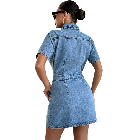 ElfogyottSHE kék rövid ujjú farmer ruha