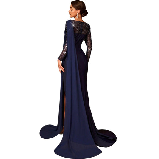 SHE sötétkék hosszú ujjú estélyi ruha