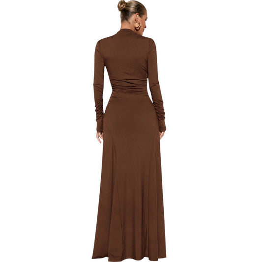 SHE barna garbó nyakú maxi ruha