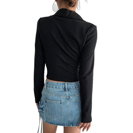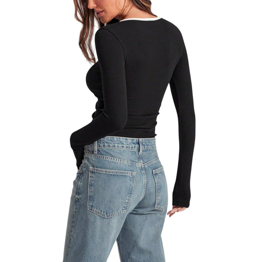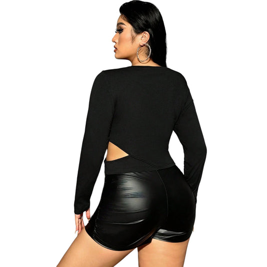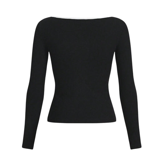 SHE fekete kivágott hosszú ujjú felső
