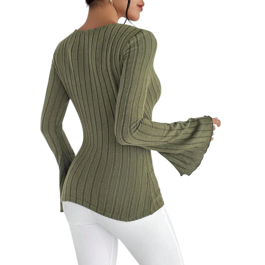 SHE zöld bordázott V-nyakú felső
