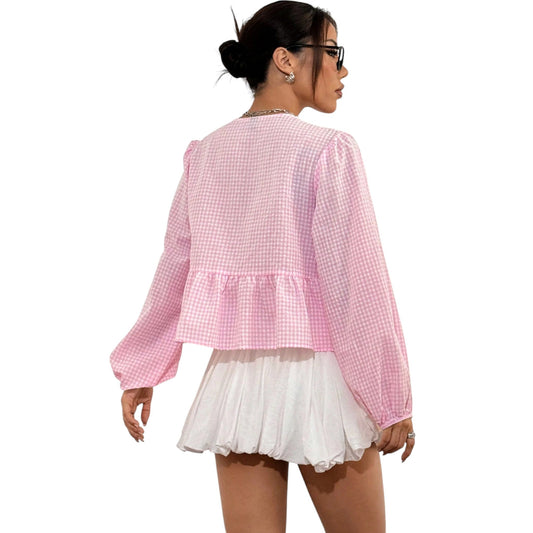 SHE rózsaszín kockás masnis blúz