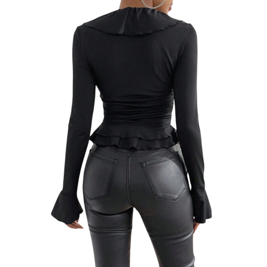SHE fekete fodros karcsúsított felső