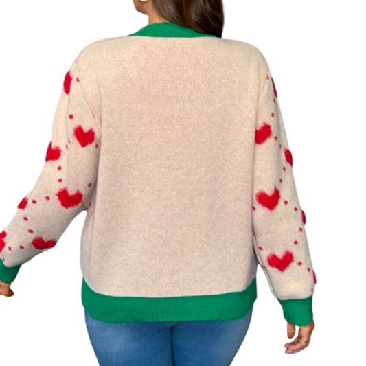 ElfogyottSHE ekrü kötött szív mintás pulóver