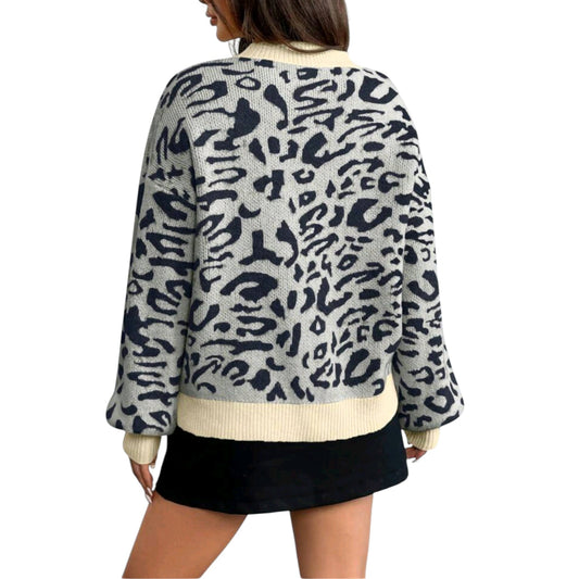 ElfogyottSHE bézs leopárd mintás kötött pulóver