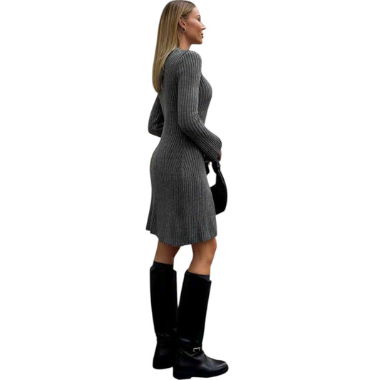 ElfogyottSHE szürke bordázott kötött mini ruha