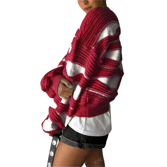 ElfogyottSHE piros csíkos kötött pulóver