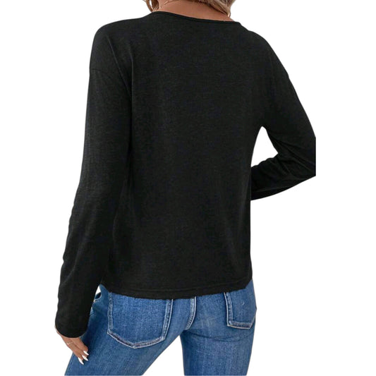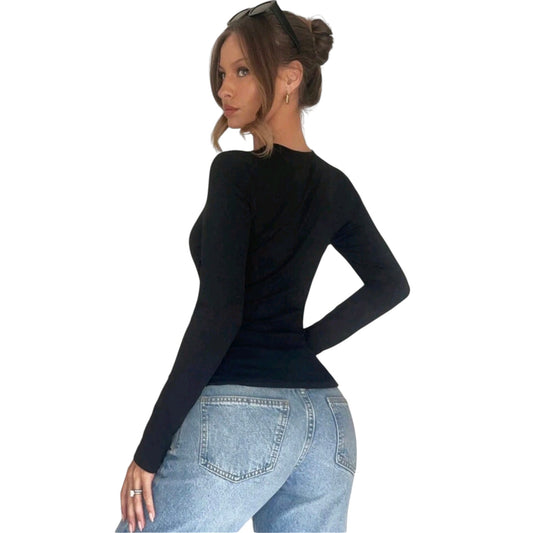 ElfogyottSHE fekete kivágott hosszú ujjú felső