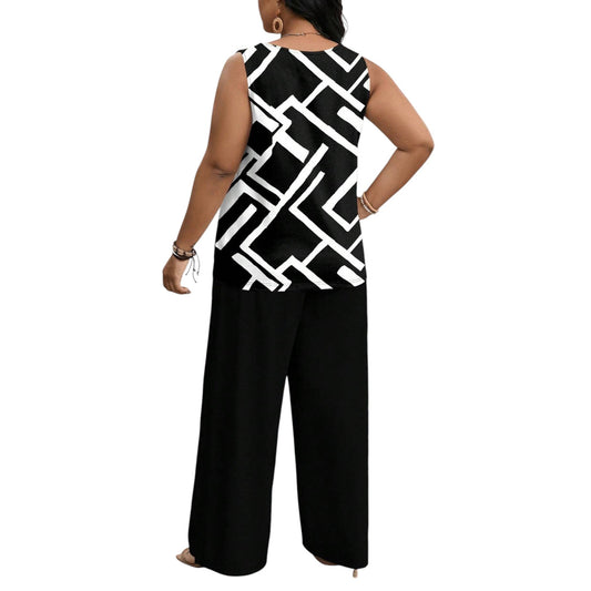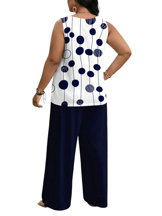 SHE fehér-sötétkék pöttyös ujjatlan blúz szett