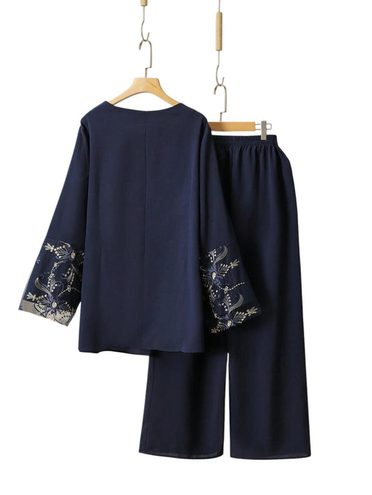 ElfogyottSHE sötétkék hímzett maxi ruha