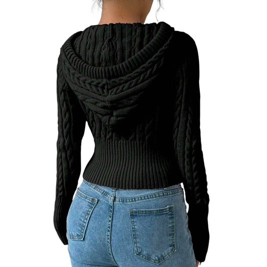 ElfogyottSHE fekete kötött kapucnis pulóver