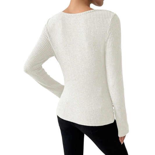SHE ekrü hosszú ujjú kötött felső