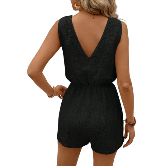 SHE fekete V-nyakú rövid overál