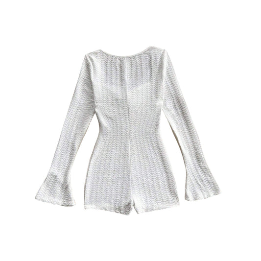 ElfogyottSHE fehér mintás hosszú ujjú playsuit