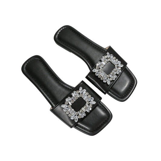 SHE fekete strasszos papucs