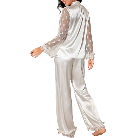 ElfogyottSHE ekrü szatén csipkés pizsama szett