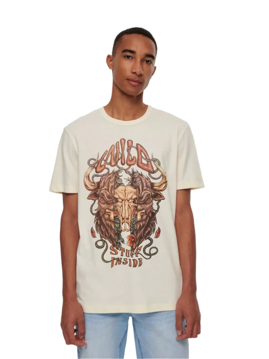 HOUSE BRAND khaki koponyamintás grafikai póló