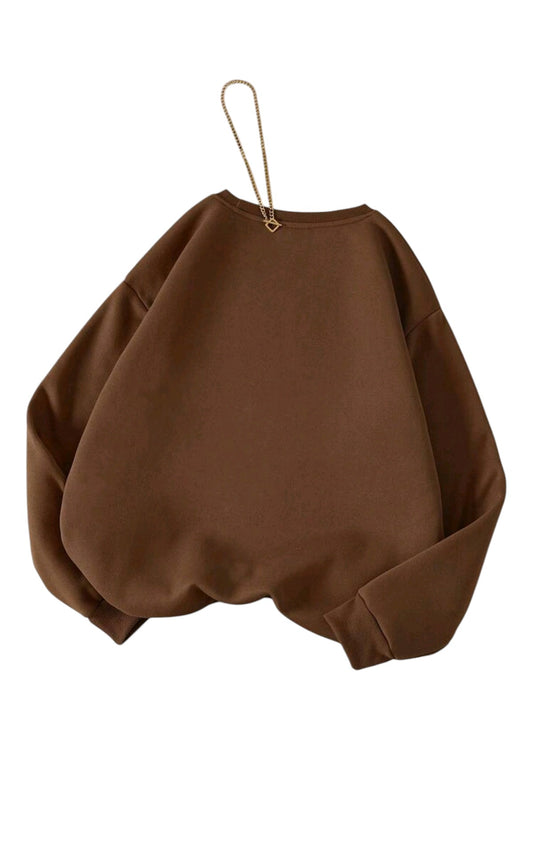 SHE barna feliratos pulóver