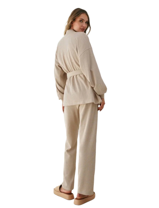 SHE bézs kényelmes kardigán és nadrág szett
