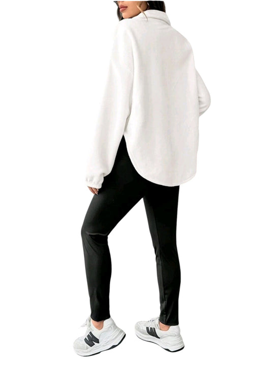 SHE fehér plüss kapucnis pulóver és nadrág szett