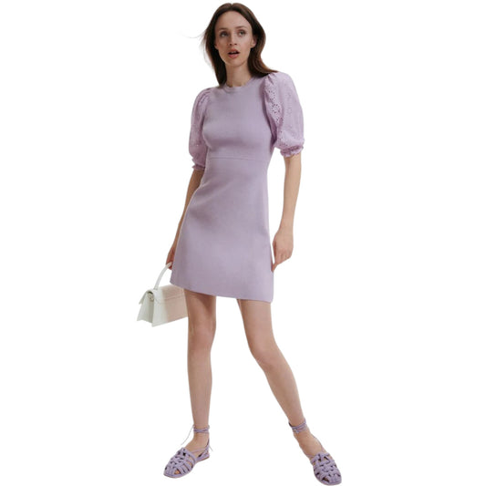 ZARA bézs pöttyös puffos ujjú mini ruha