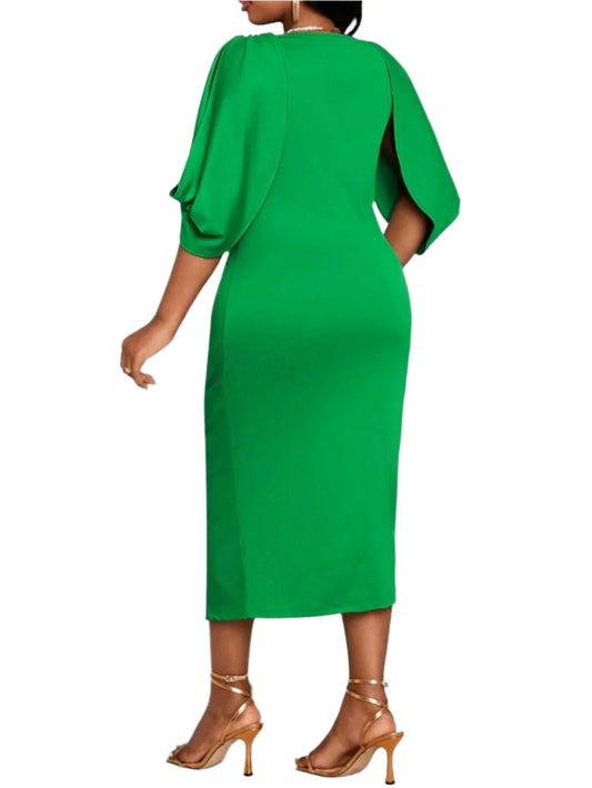 MOHITO zöld fodros ujjú elegáns midi ruha