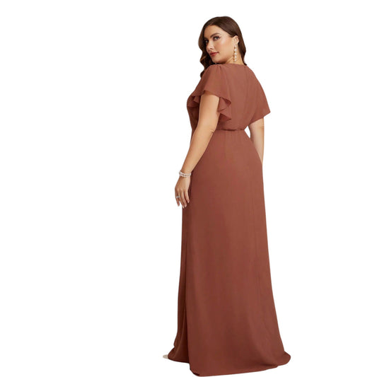 SHE barna V-nyakú redőzött maxi ruha
