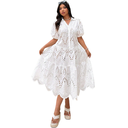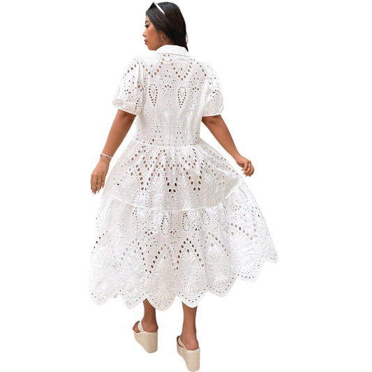 SHE ekrü hímzett midi ruha
