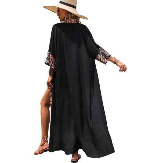 ElfogyottSHE fekete mintás hosszú kimono